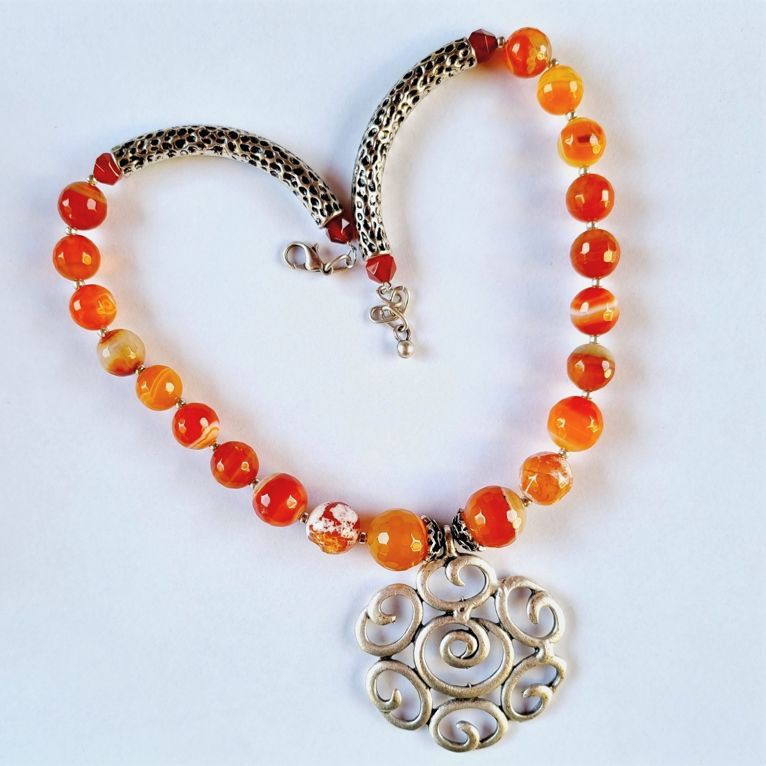 Bijzonder mooie collier met oranje/rode  carneool edelstenen.