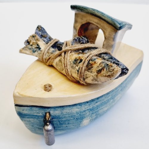 Voor haar staat een leeg kopje, alsof de dag nog maar net moet beginnen.